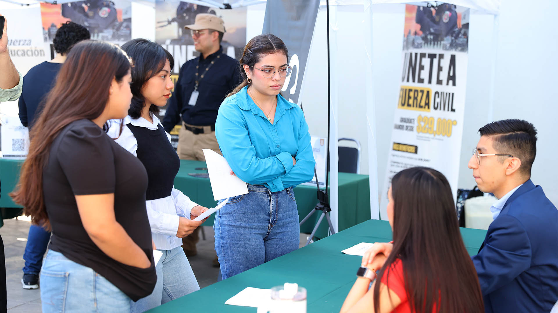 La edición 2025 de la Feria del Trabajo contó con 28 stands de corporaciones policiacas, despachos de abogados y entidades bancarias que ofertaron vacantes de empleo, servicio social y prácticas profesionales.