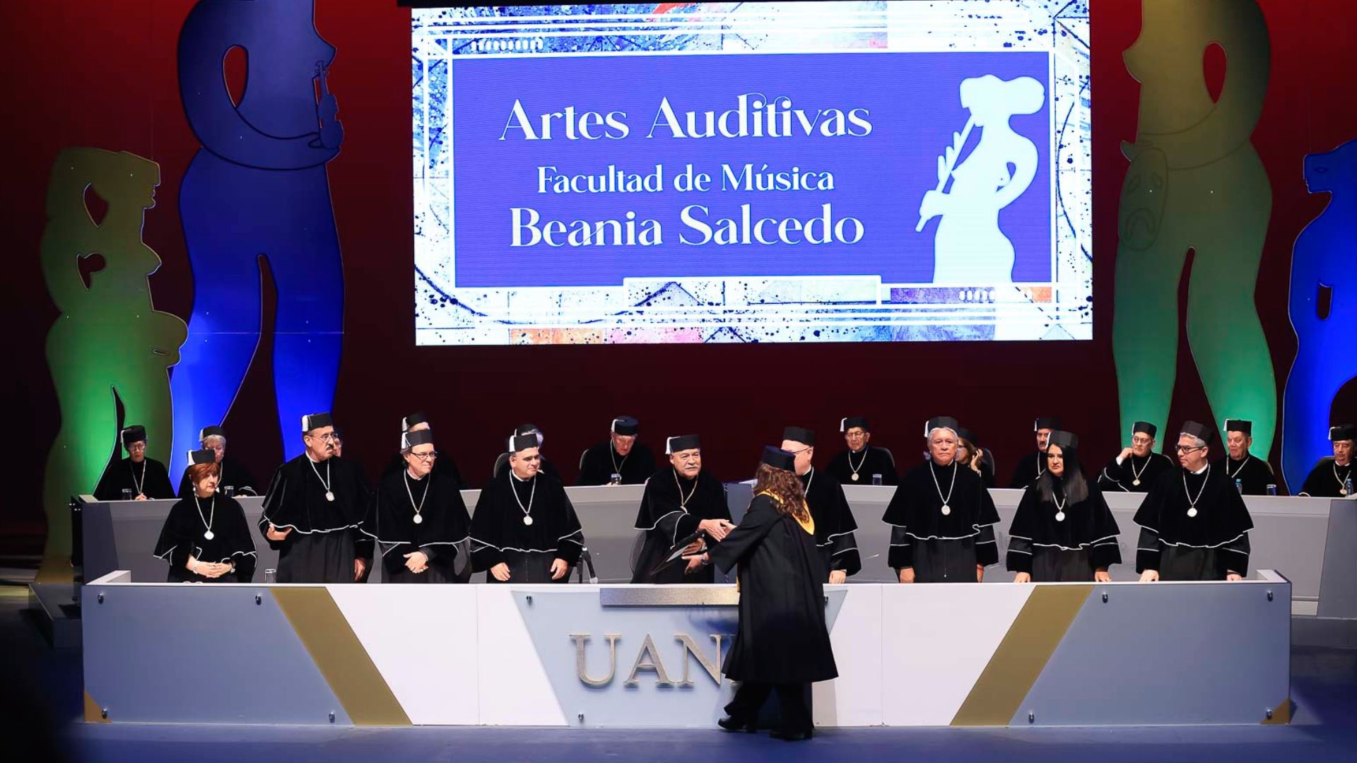 Beania Salcedo Moncada, de la Facultad de Música, acreedora del premio en el área de artes auditivas, enfatizó la importancia y el valor de la cultura, en especial la música, para todos las personas.