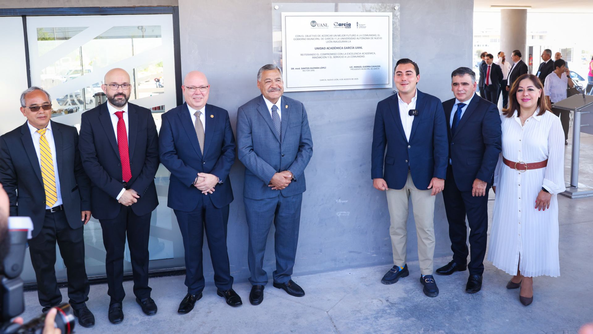El Rector de la UANL, Santos Guzmán López, encabezó la ceremonia inaugural del nuevo espacio universitario, acompañado por el alcalde Manuel Guerra Cavazos y directivos universitarios, como el Secretario General, Mario Alberto Garza Castillo, y el Secretario Académico, Jaime Arturo Castillo Elizondo.
