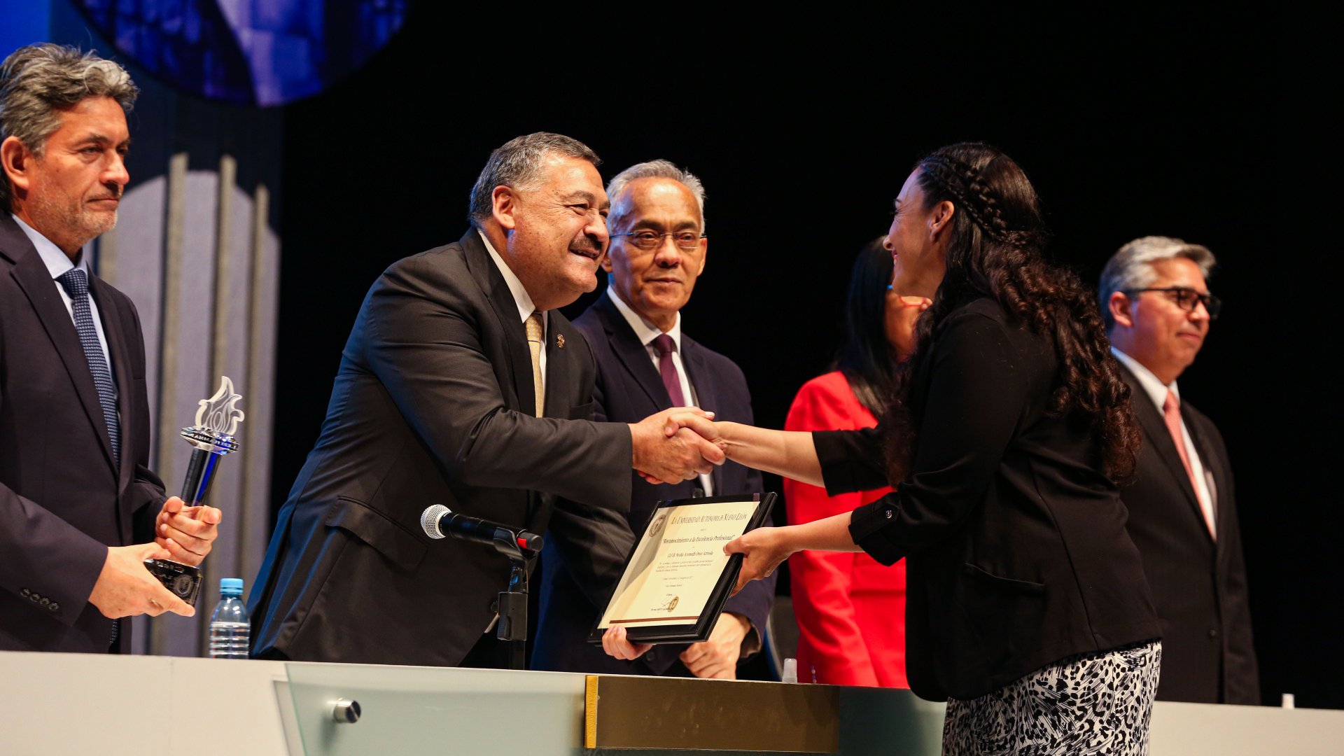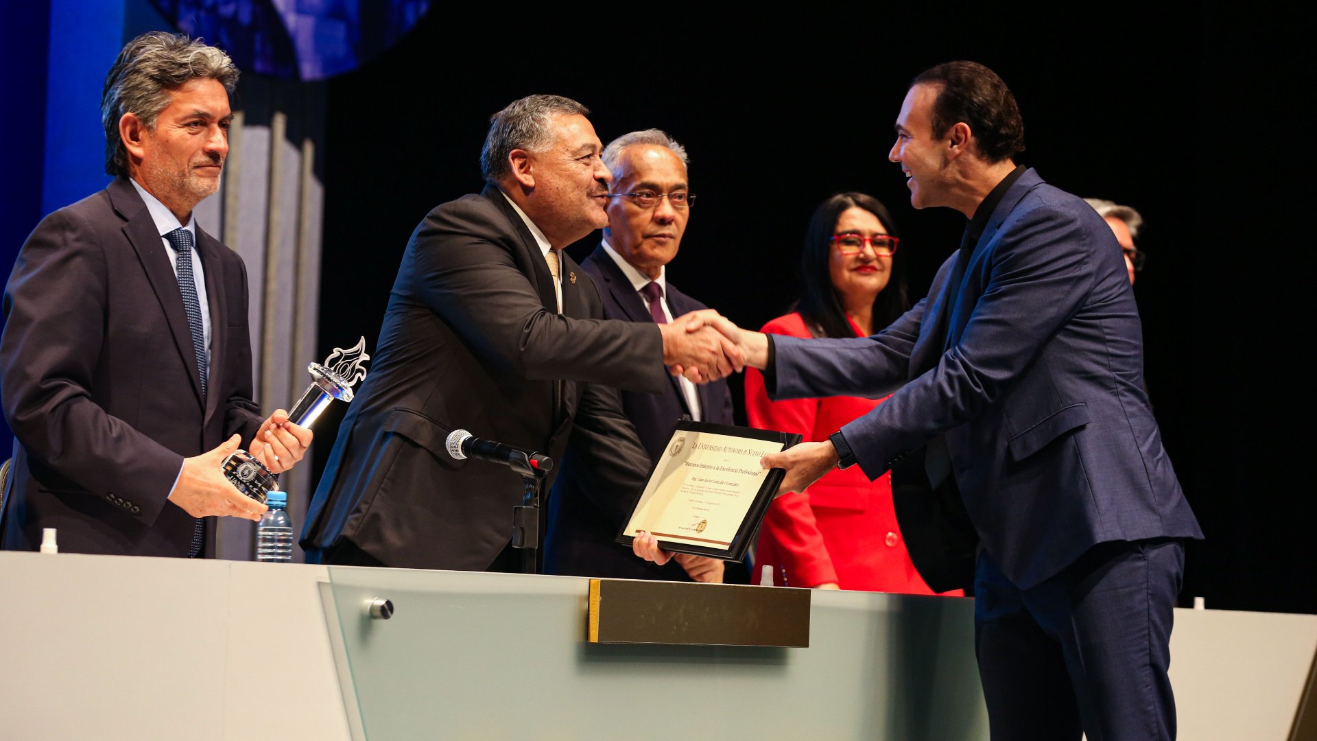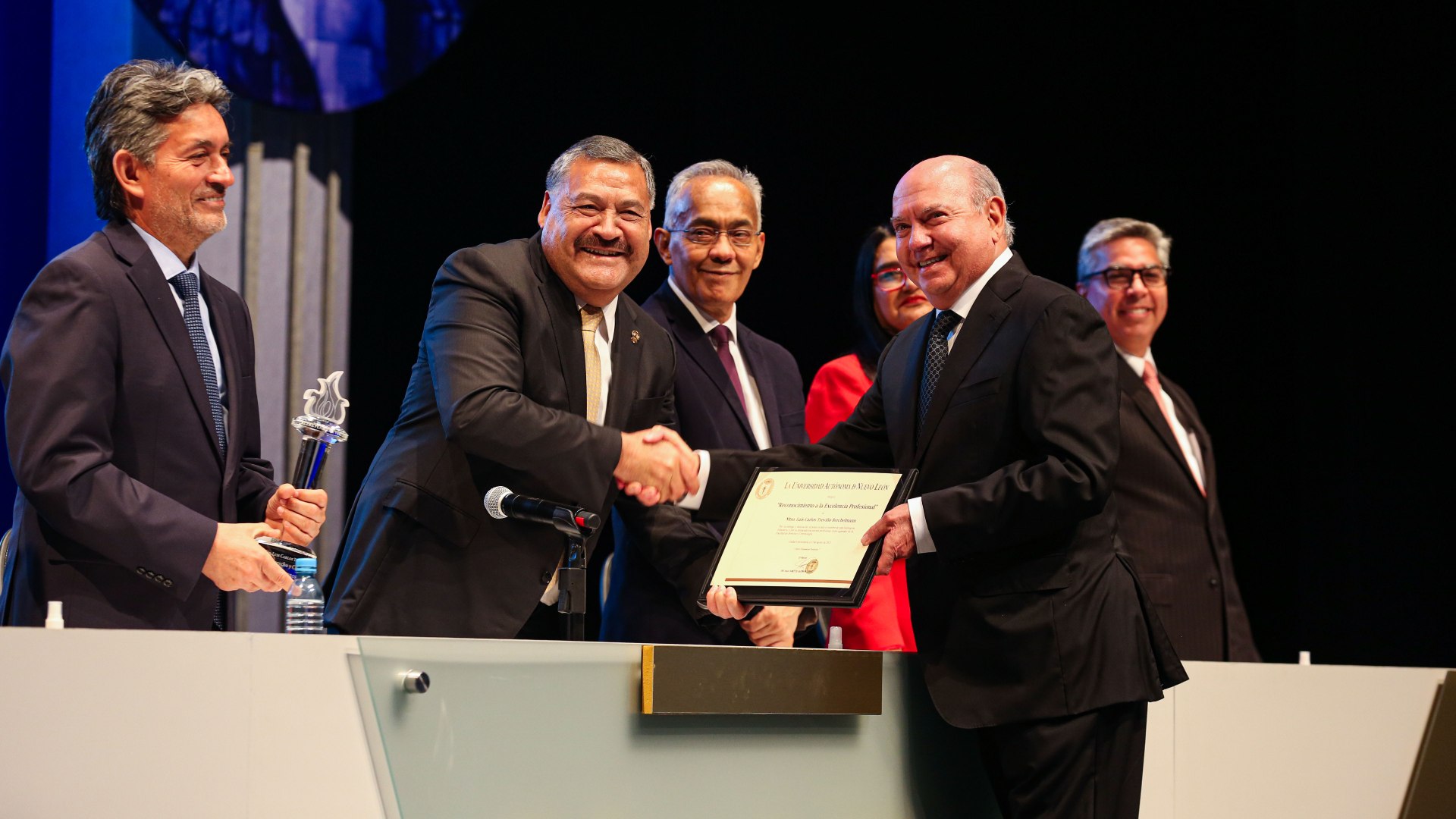 El desempeño profesional, académico y empresarial de 35 exalumnos de licenciatura fue distinguido por la Máxima Casa de Estudios de Nuevo León en ceremonia celebrada en el Teatro Universitario de la Unidad Mederos.