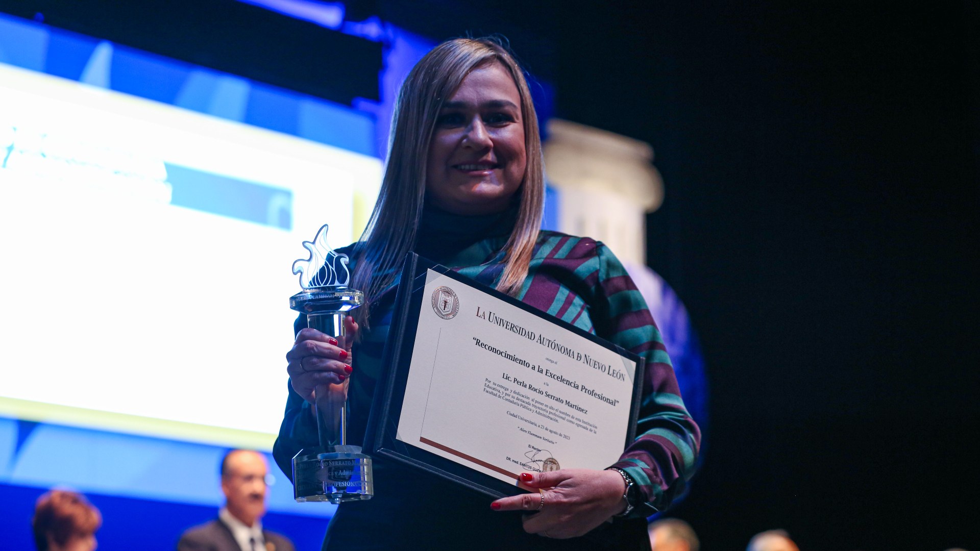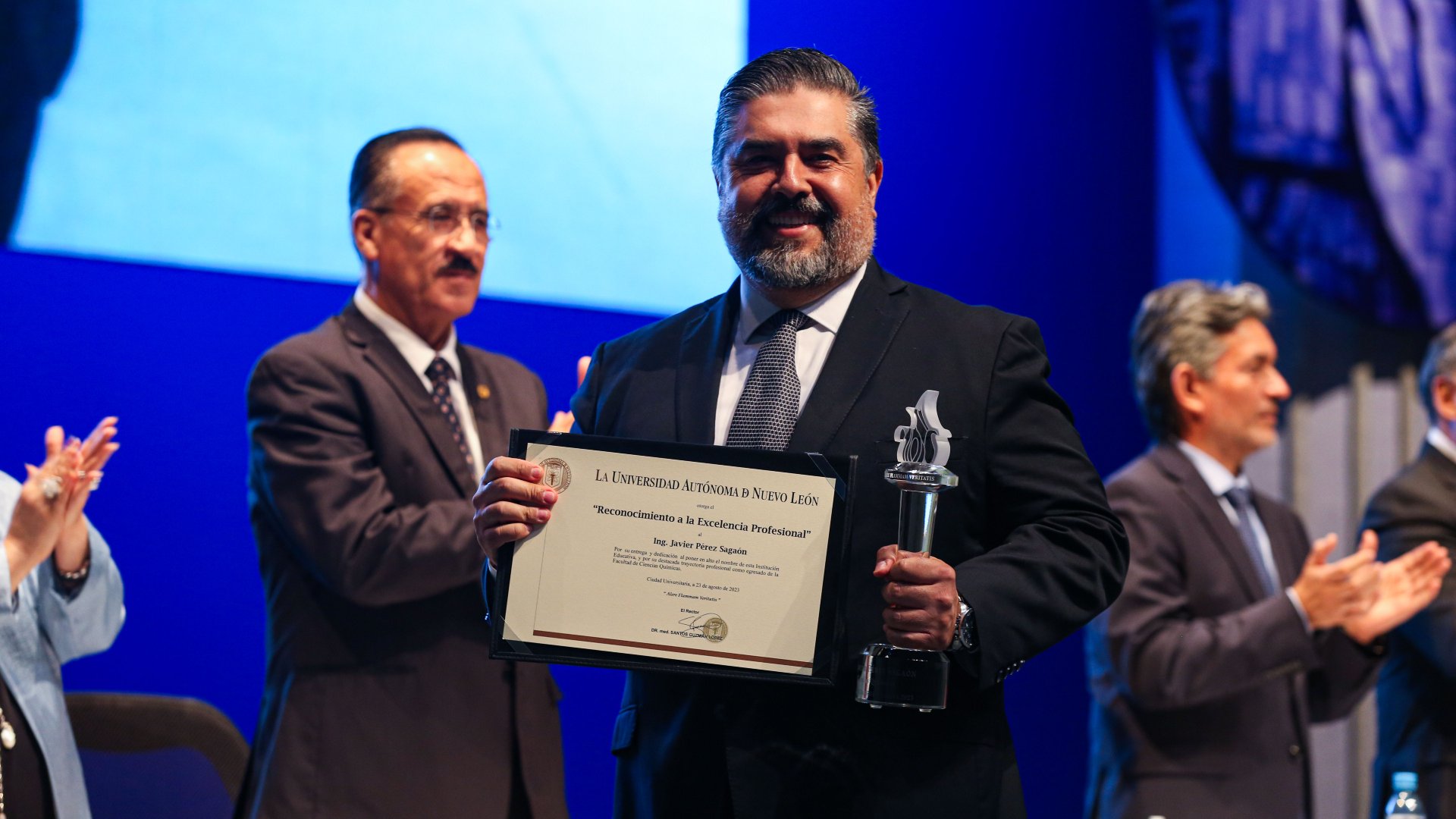 El Rector de la Universidad Autónoma de Nuevo León, Santos Guzmán López, encabezó la ceremonia de Reconocimiento a la Excelencia Profesional 2023, donde la UANL distingue a los egresados de las facultades que se hayan distinguido en su desempeño profesional, académico y empresarial.