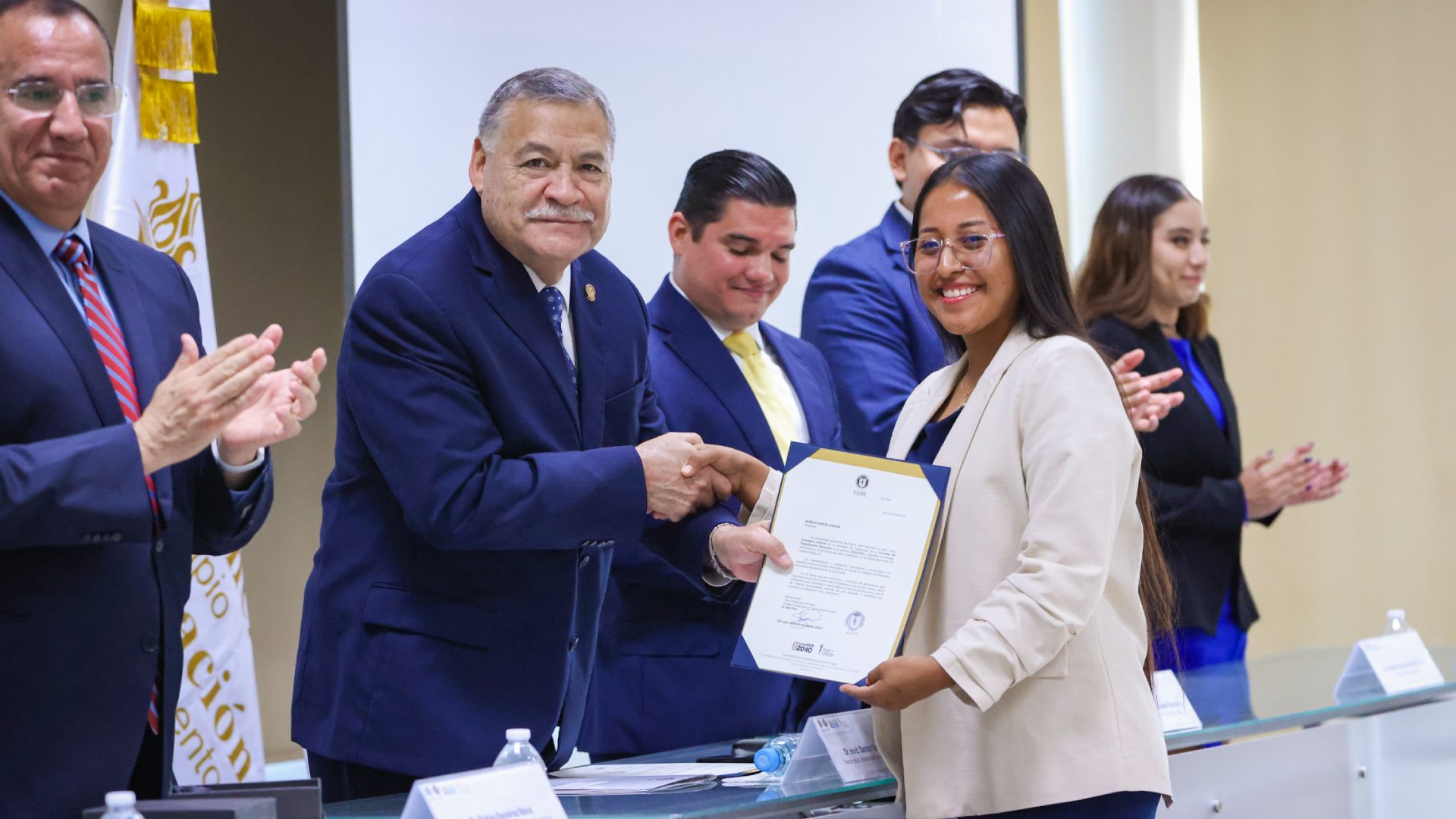 En el evento también se agradeció a los integrantes salientes (2022-2025), encabezados por César Alejandro Cuéllar Estrada y Rebeca García Gaspar, quienes concluyeron sus funciones tras tres años de representación estudiantil de la Sociedad de Alumnos.