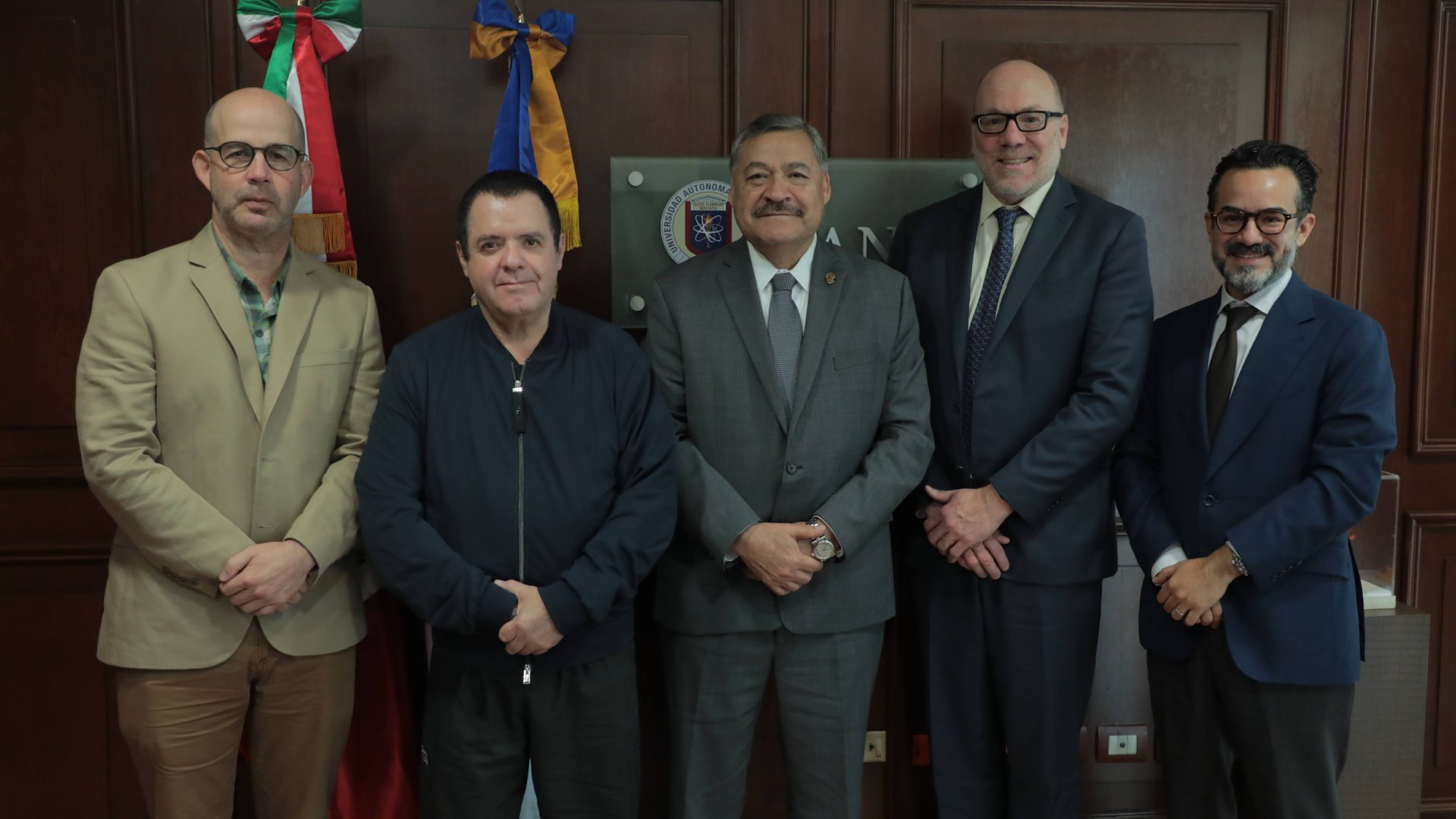 El director de la Facultad de Medicina y Hospital Universitario “Dr. José Eleuterio González”, Oscar Vidal Gutiérrez; el jefe de Psiquiatría en la UANL, Stefan Fernández, y el ahora colaborador de investigación en Mayo Clinic Alfredo B. Cuéllar Barboza también estuvieron presentes durante la reunión.