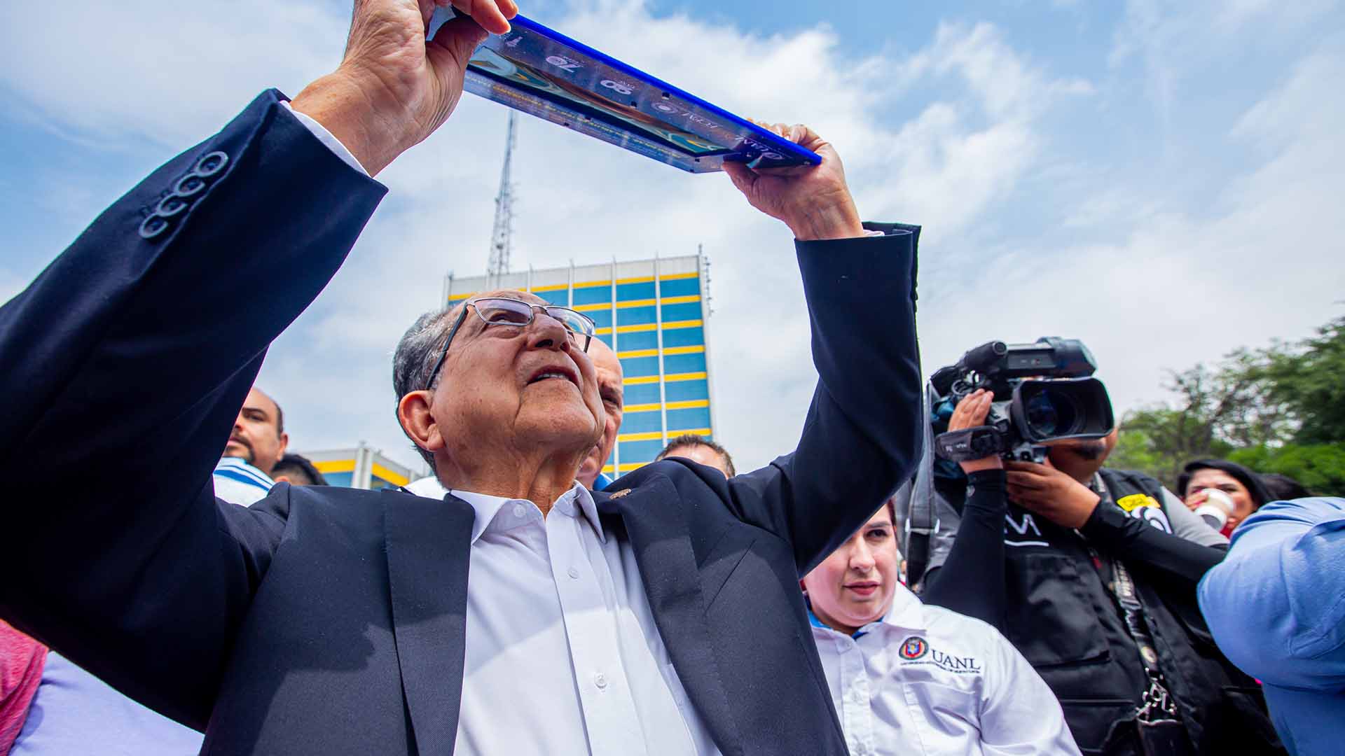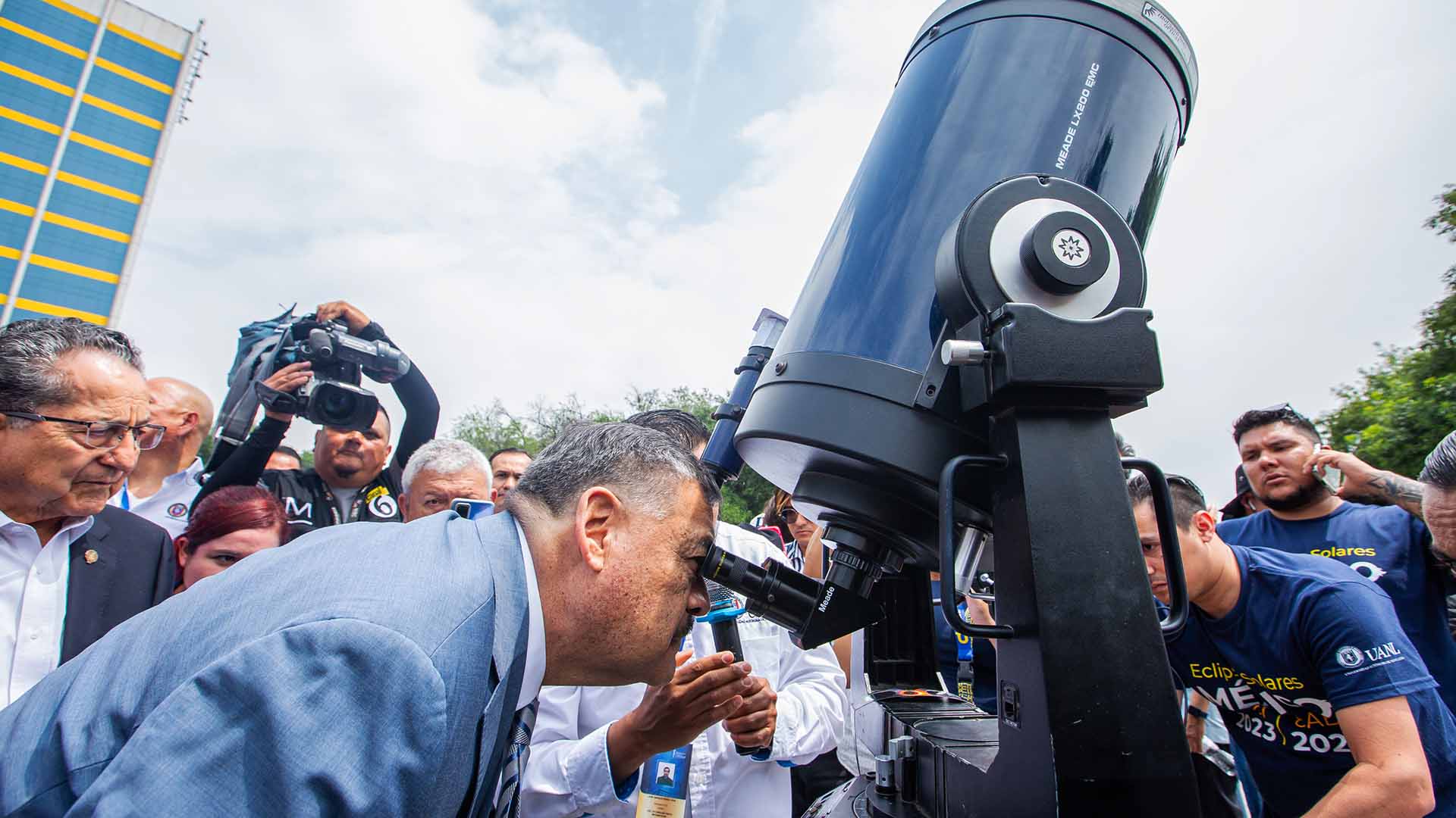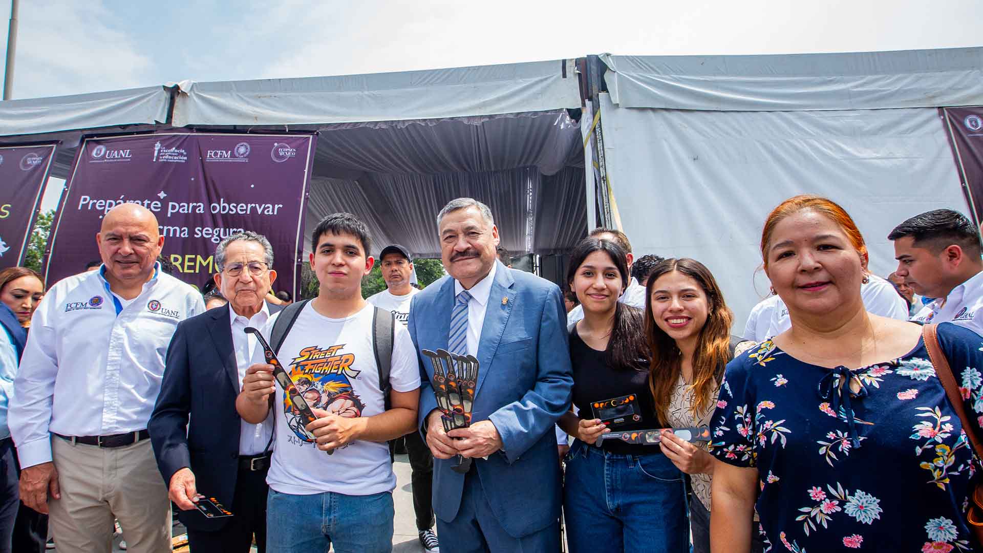 El Rector de la UANL, Santos Guzmán López, supervisó las actividades de la jornada, apreciando el fenómeno astronómico en compañía de la comunidad universitaria mediante telescopios, visores y sistemas de proyección instalados por profesores, investigadores y estudiantes de la Facultad de Ciencias Físico Matemáticas (FCFM).