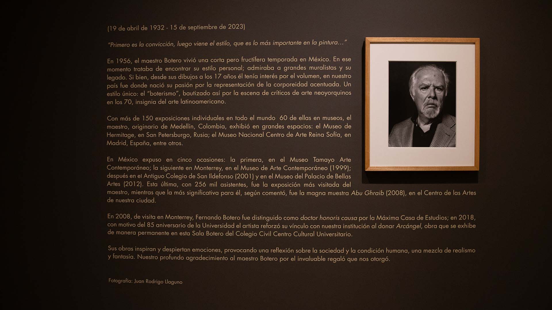 En 2008, la UANL entregó a Fernando Botero un Doctorado Honoris Causa y una década más tarde inauguró la “Sala Botero”, que alberga “Arcángel”, una pieza donada por el artista.