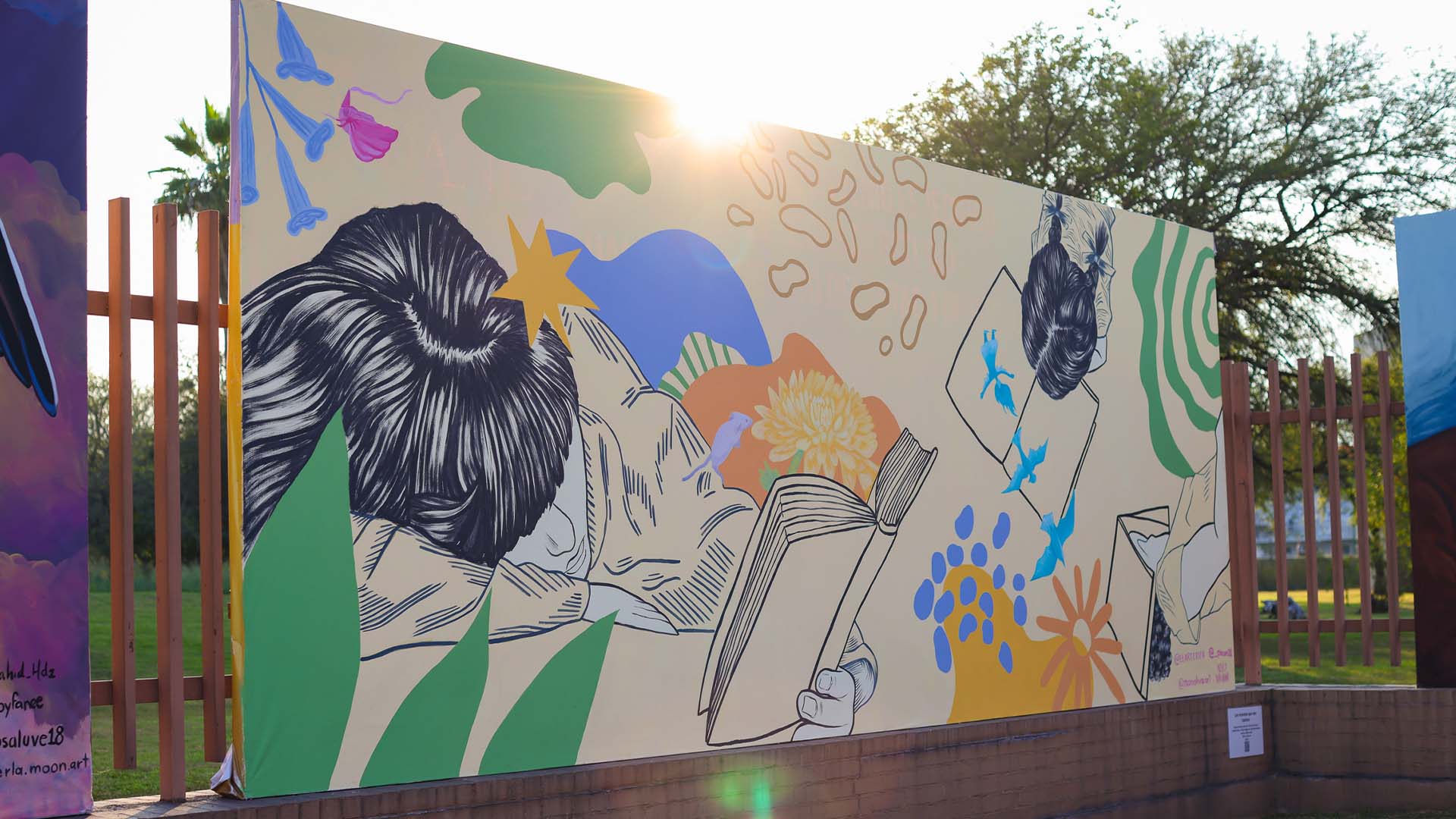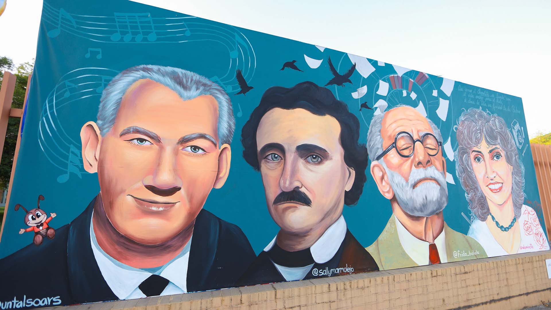 En el marco del 30 aniversario de la Biblioteca Universitaria Raúl Rangel Frías, diversos artistas participaron en la creación de murales para la exposición colectiva “Entre letras y pinceles”.