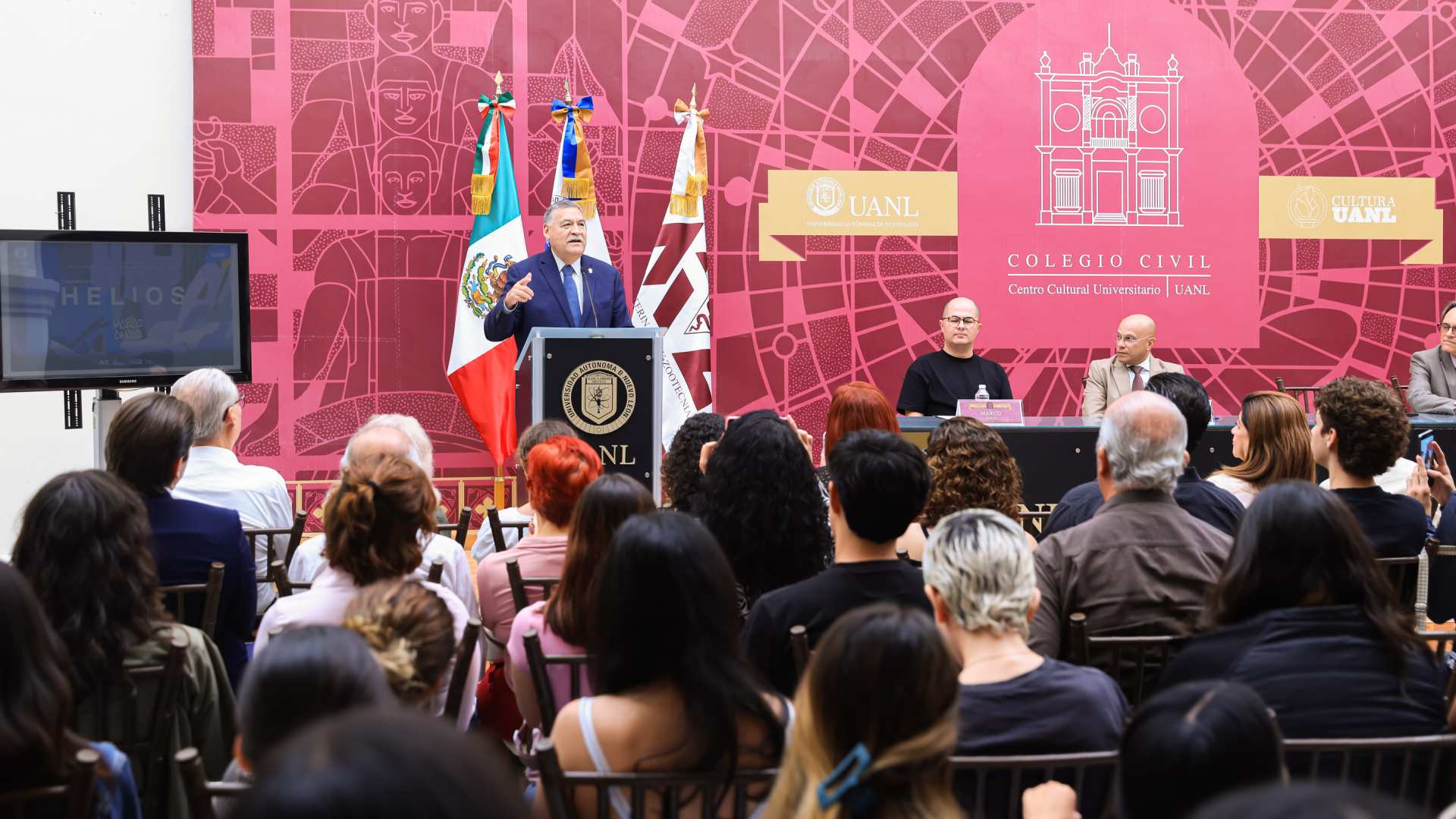 Durante la inauguración, el Rector de la UANL, Santos Guzmán López, felicitó a la dependencia por su participación en los festejos del 92 aniversario de la Universidad y por promover el diálogo entre ciencia y arte.