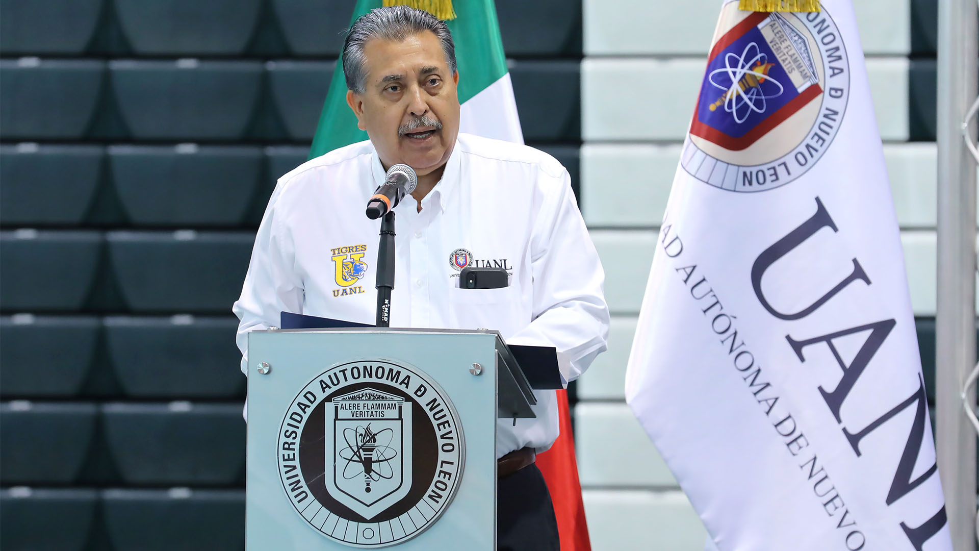 Vamos con el entusiasmo de destacar en nuestros deportes. Quienes vestimos el uniforme de Tigres vamos con la idea de obtener triunfos y de imponer marcas con voluntad y sed de triunfo. Unidos reafirmaremos que somos la Universidad número uno del deporte en México”.
