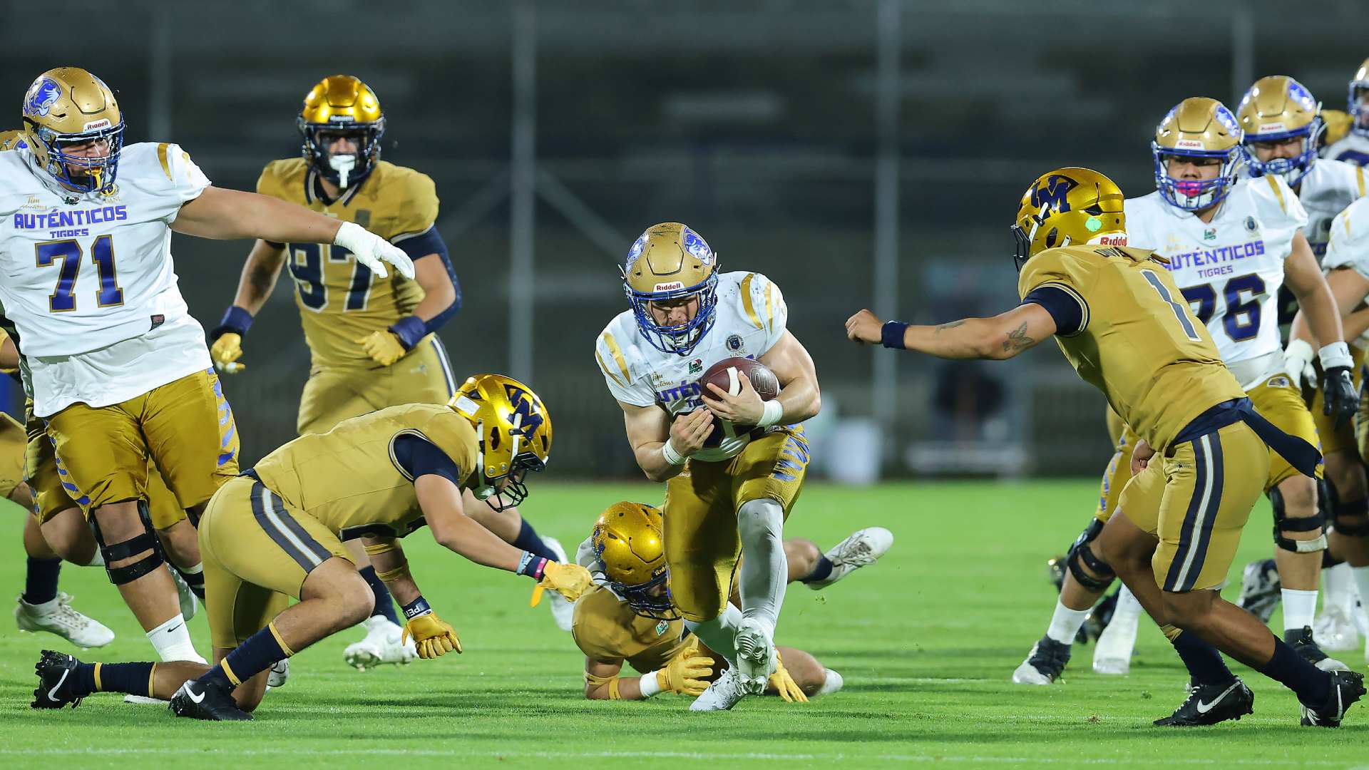 Los Auténticos Tigres de la Universidad Autónoma de Nuevo León derrotaron con marcador final 20-28 a los Pumas de la Universidad Nacional Autónoma de México en la jornada 2 de la Liga Mayor ONEFA.