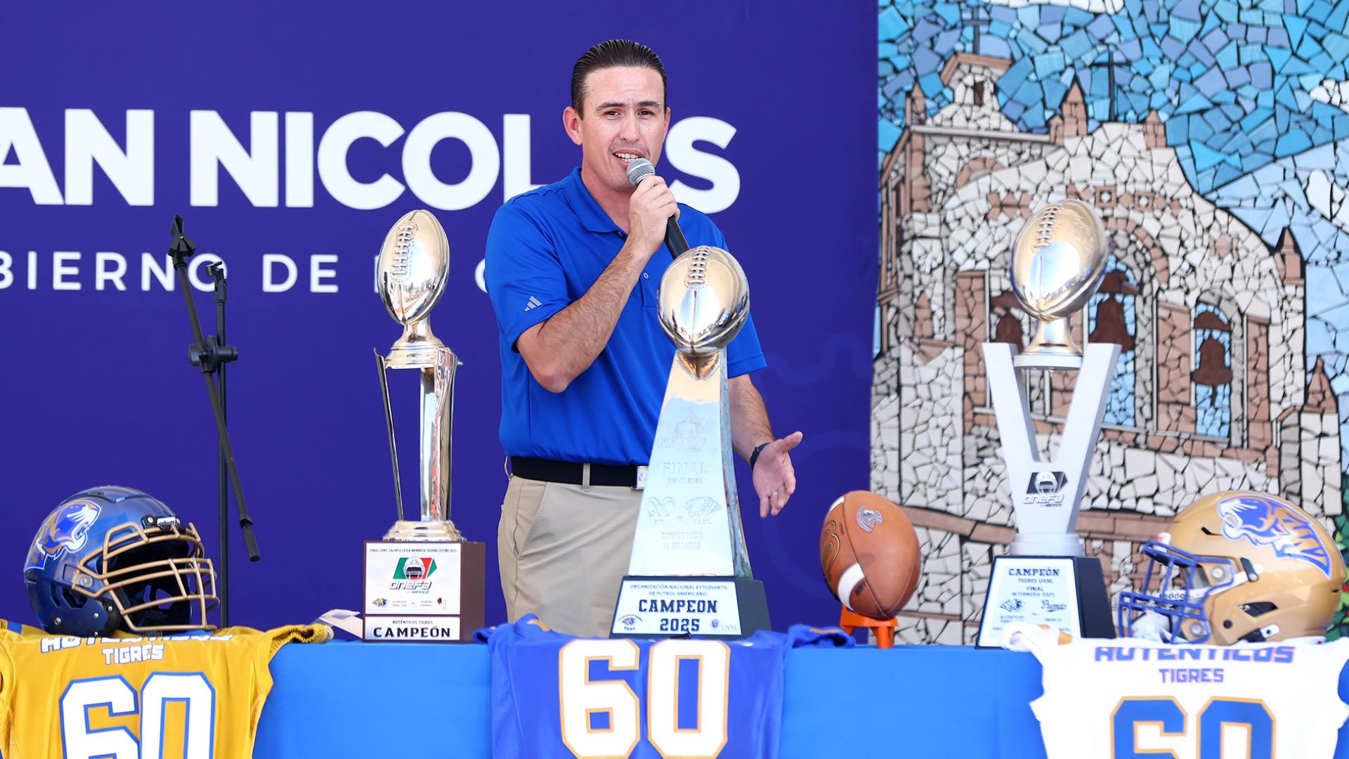 Por obtener la triple corona del futbol americano a nivel nacional en 2025, el Gobierno de San Nicolás entregó un reconocimiento a cada una de las tres categorías de los Auténticos Tigres de la Universidad Autónoma de Nuevo León.