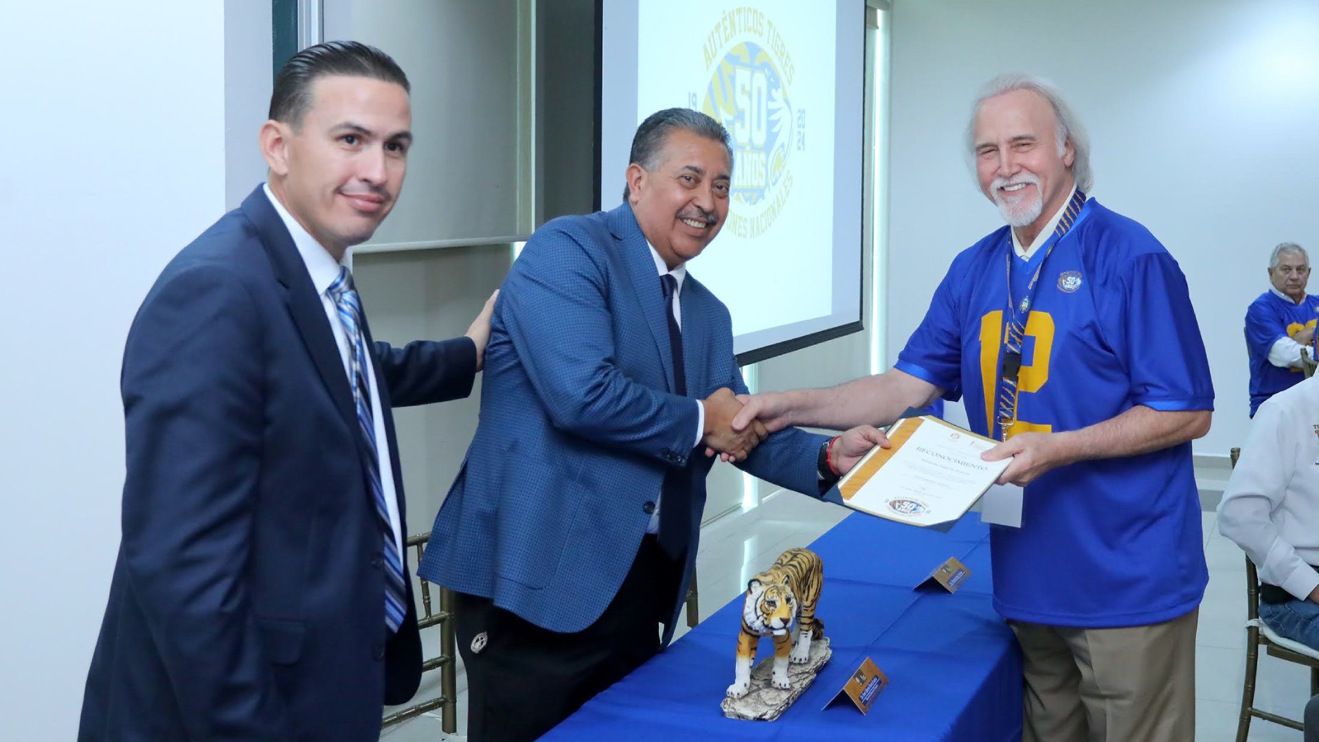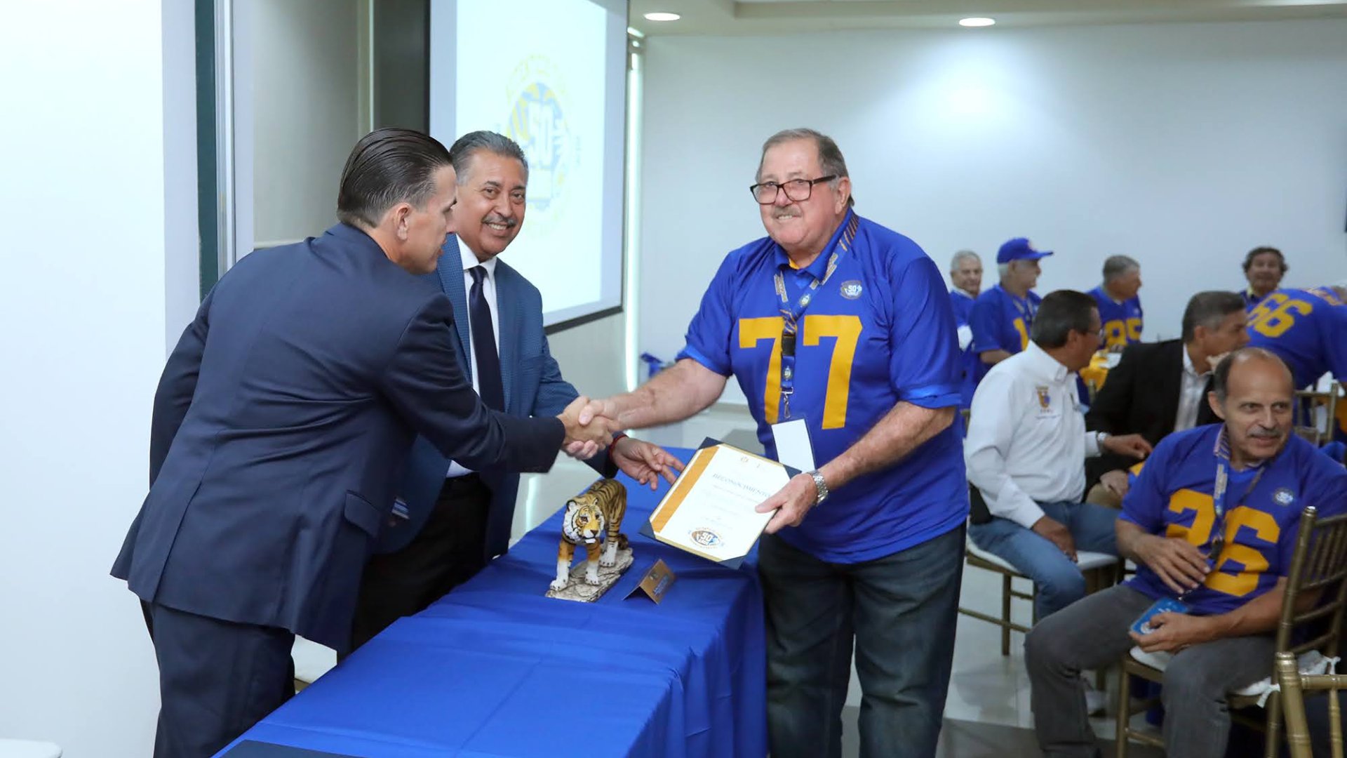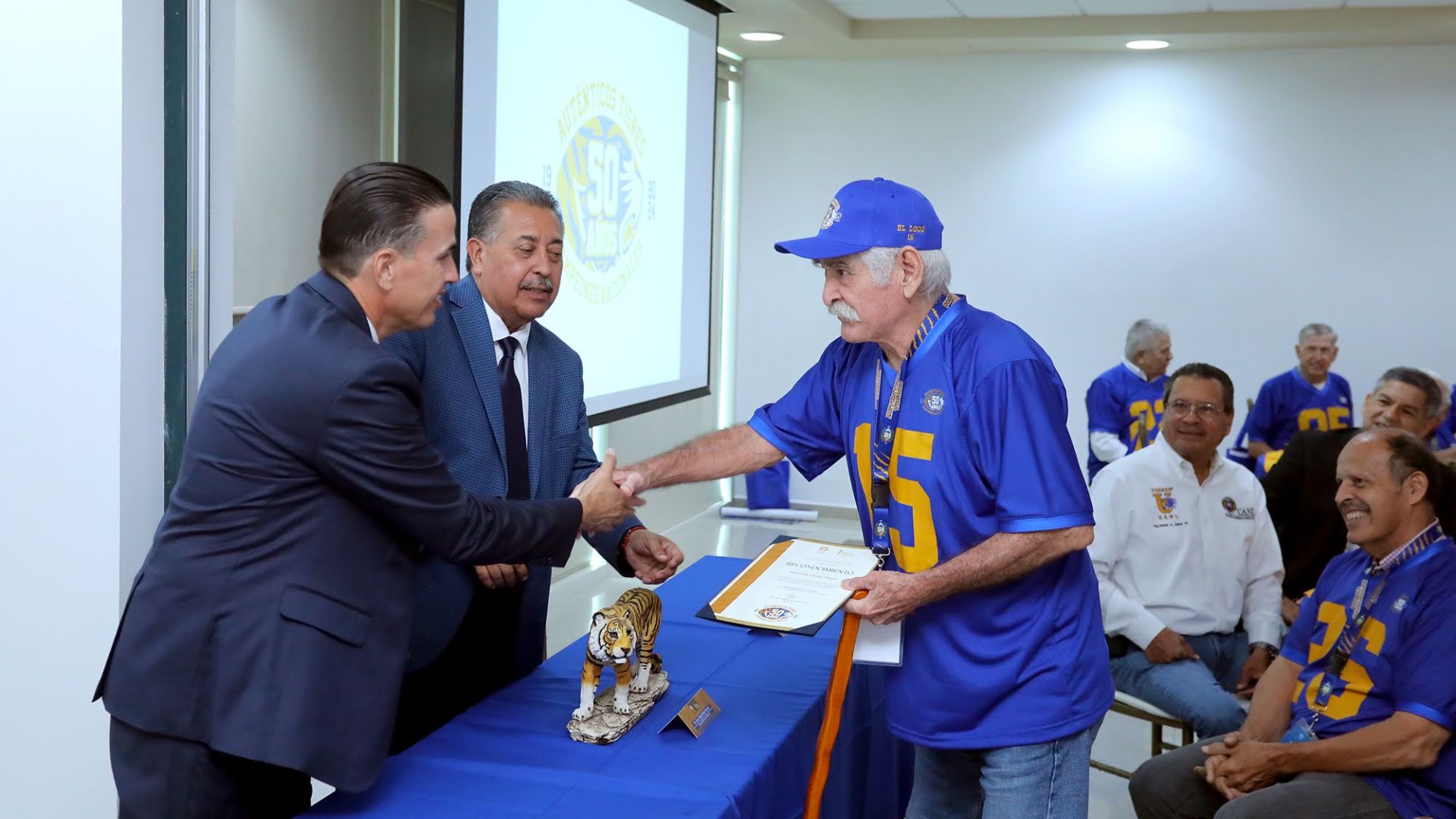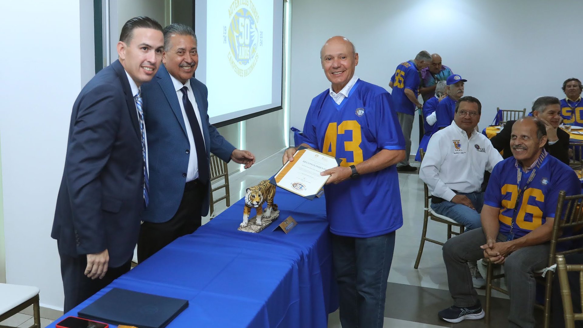 Esa fraternidad de jugadores, staff y comunidad se volvió a reunir 50 años después para celebrar el primer campeonato nacional universitario de los Auténticos Tigres y recibir un reconocimiento de parte de la Dirección de Deportes de la UANL, encabezada por su director, José Alberto Pérez García.